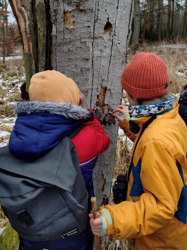 Alljährlich zur Winterzeit beschäftigt sich unsere JuNa-Gruppe mit den heimischen Wintervögeln. Dieses Jahr waren wir auf Spurensuche in den Herrnhuter Wäldern. Wir lauschten Vogelstimmen und beobachteten einzelne Arten und ihr Verhalten.