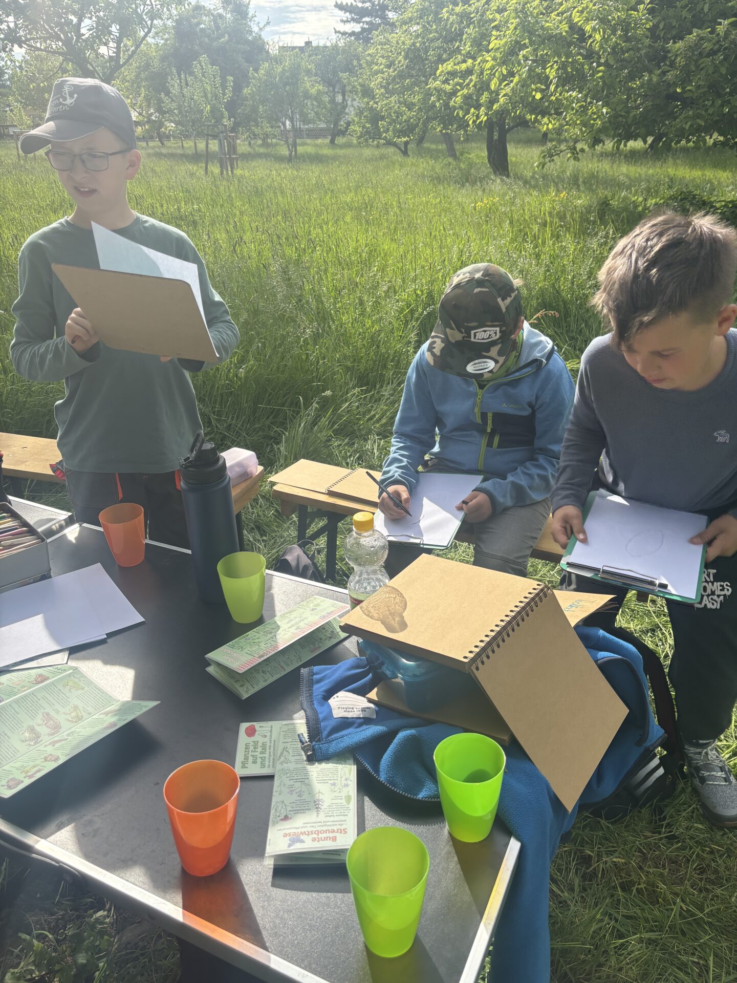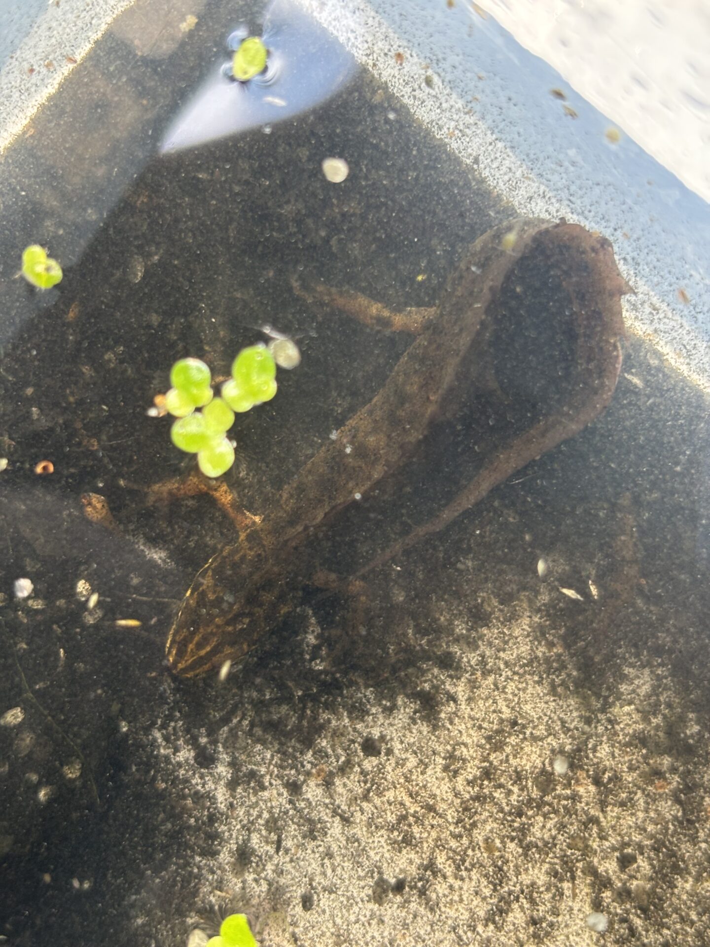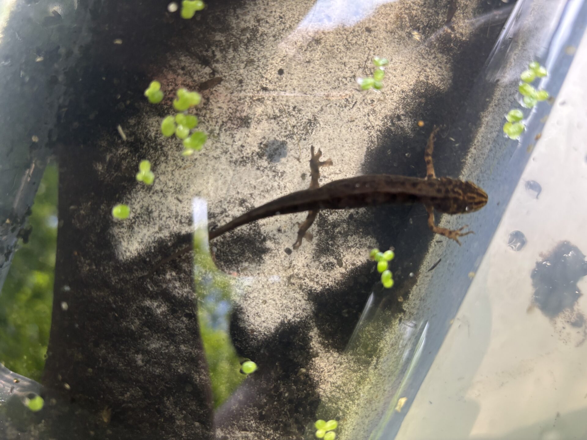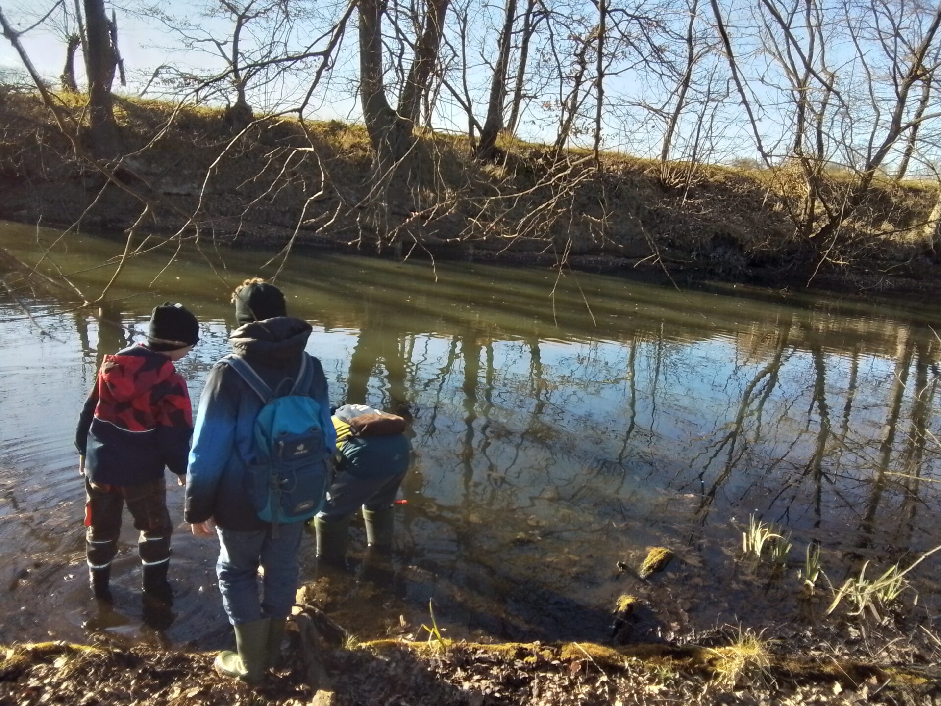 Nach einem Einstieg ins Thema im Januar, bei dem wir erstmal den Unterschied zwischen Fröschen und Kröten und Unken herausfanden, folgte im März eine erste Gelände-Erkundung mit Keschern und eine Fachexkursion zum Amphibienzaun mit unserem lokalen Artexperten Rolf Schulze. Im Verlauf des Frühjahrs bauten wir gemeinsam Molchreusen, setzten diese über Nacht ins Gewässer und kontrollierten sie dann. Dabei konnten wir einen weiblichen und später auch einen männlichen Teichmolch nachweisen, worüber wir uns natürlich sehr freuten – die sind wirklich niedlich.