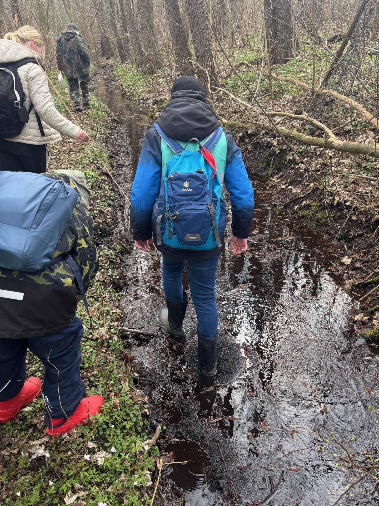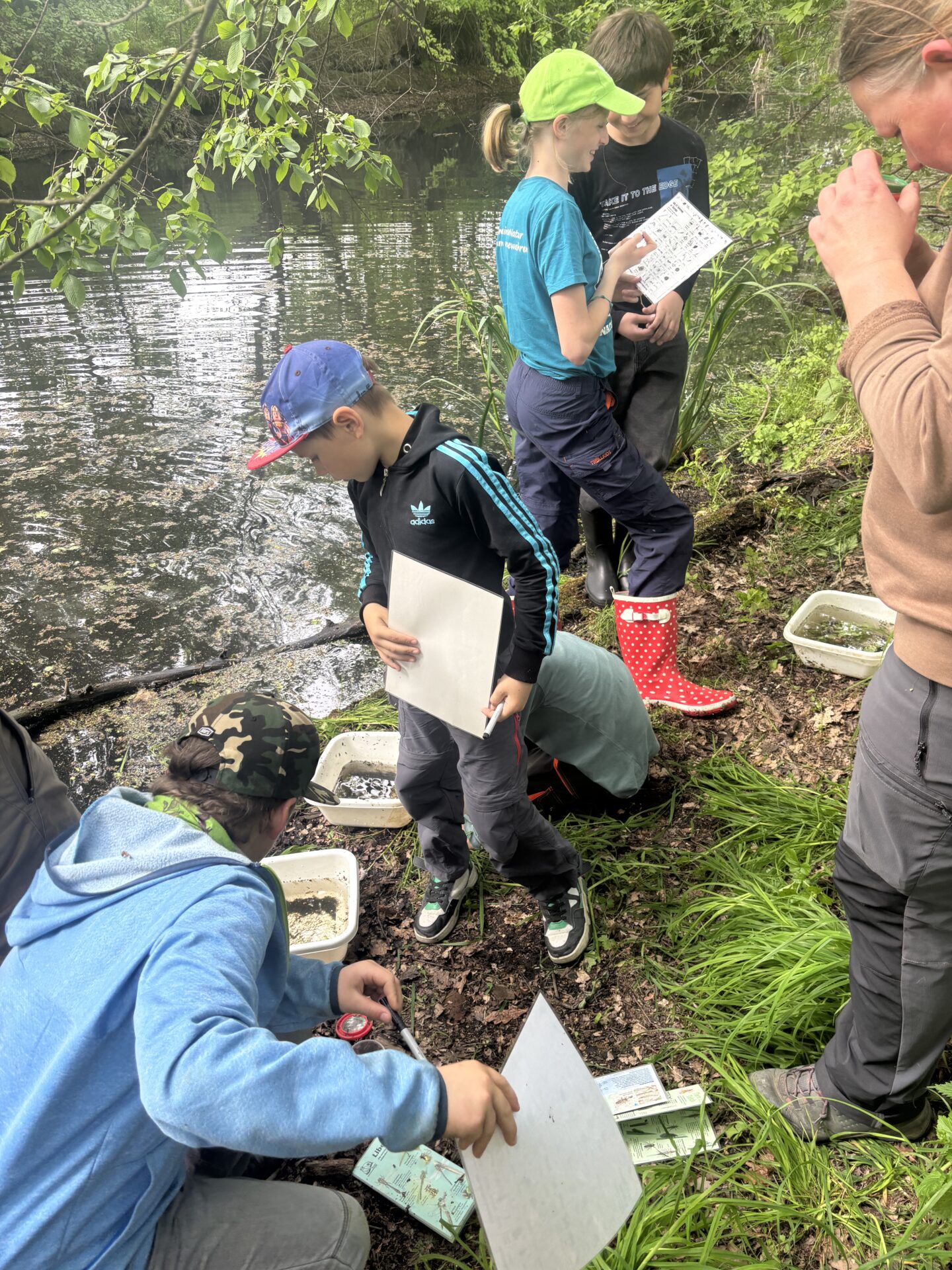 Außerdem haben wir das Gewässer auch in der Dämmerung besucht und dabei dem Rufen der Frösche und Kröten gelauscht. Während des Projekts haben wir spezielle Kartierungsbögen genutzt und konnten den Teichmolch, den Wasserfrosch und den Laubfrosch zweifelsfrei nachweisen. Außerdem haben wir auch viele Insekten und deren Larven und auch sehr viele Vögel beobachtet und sogar eine gerandete Jagdspinne gefangen und gleich wieder freigelassen.