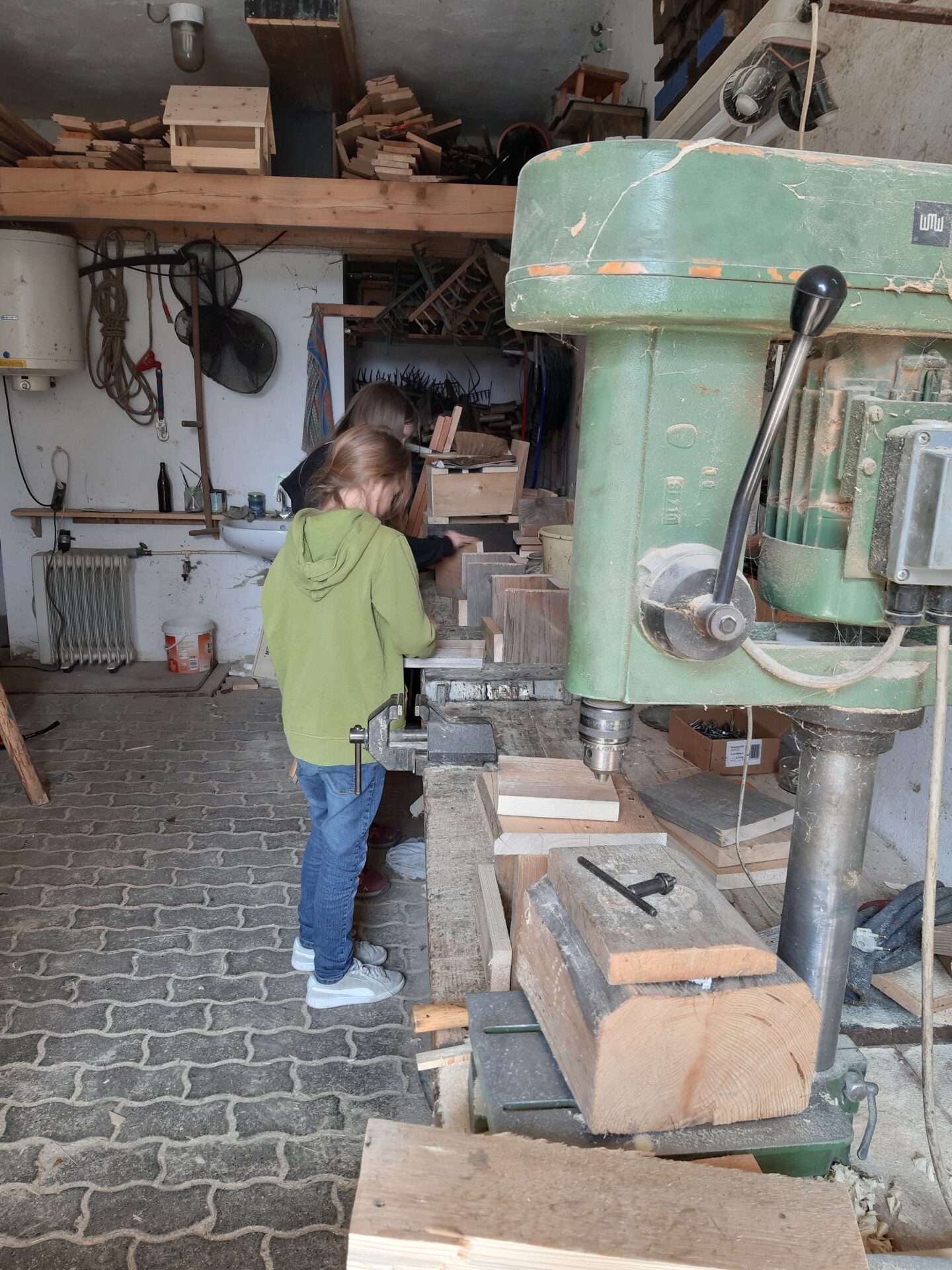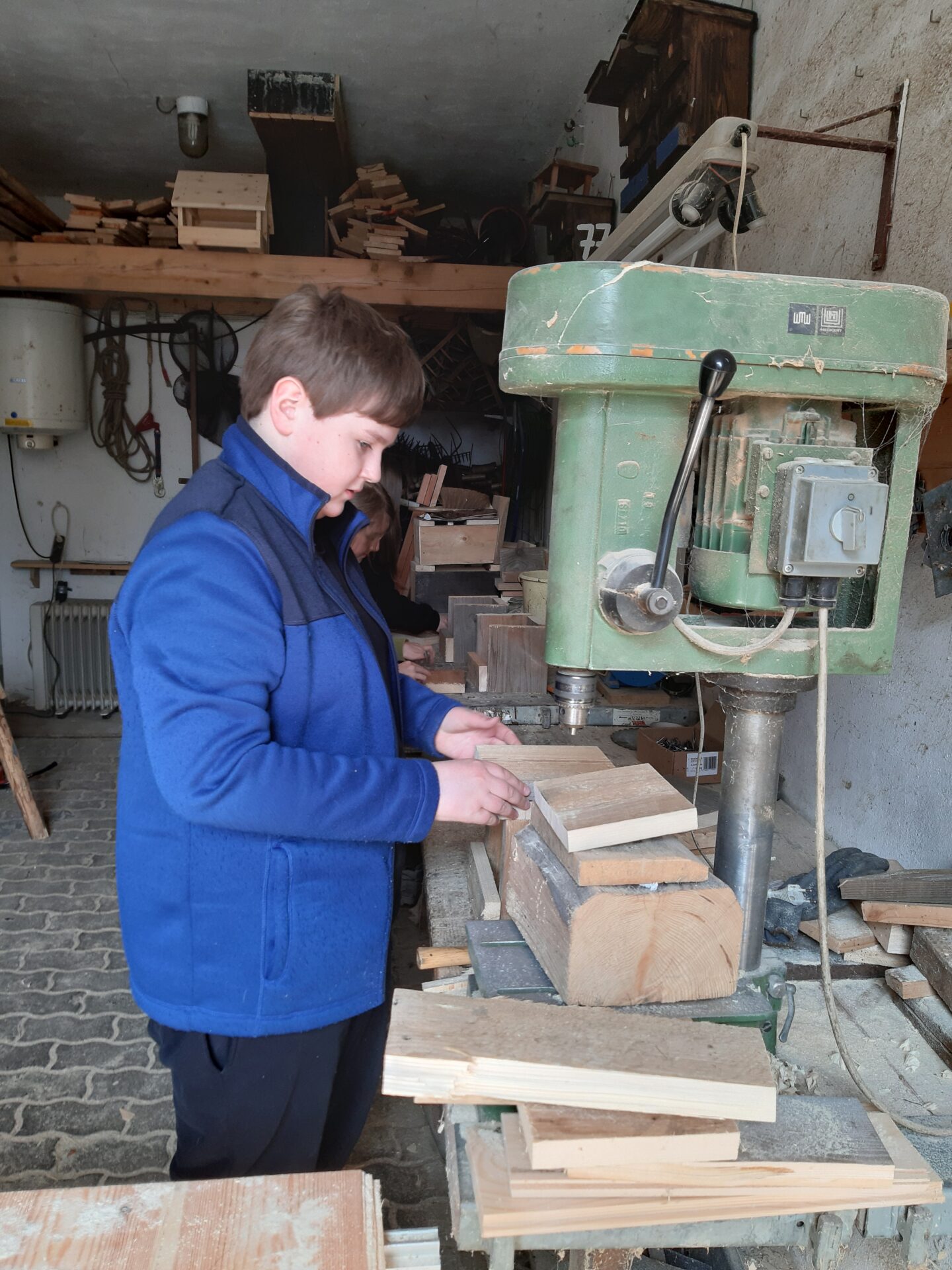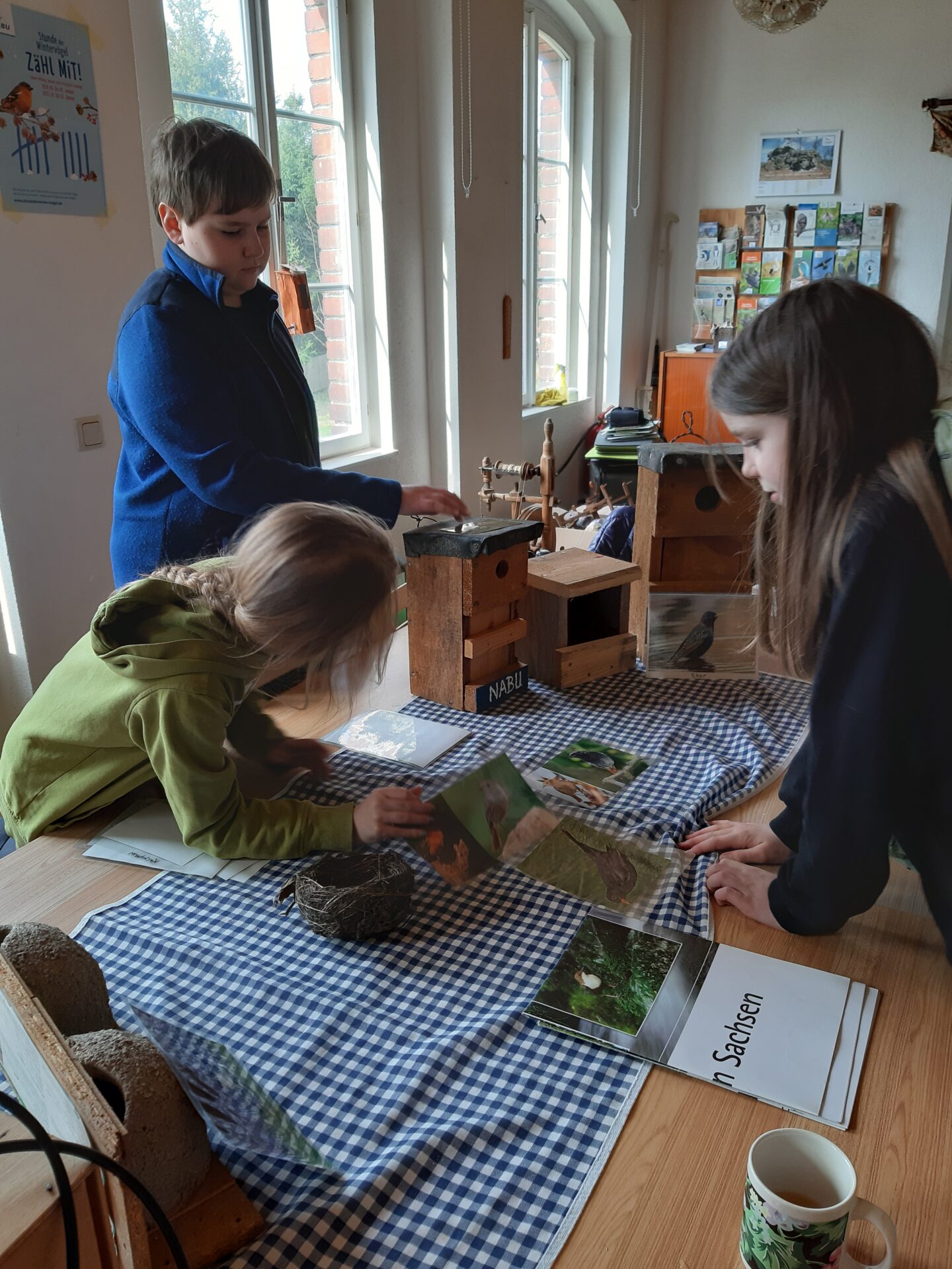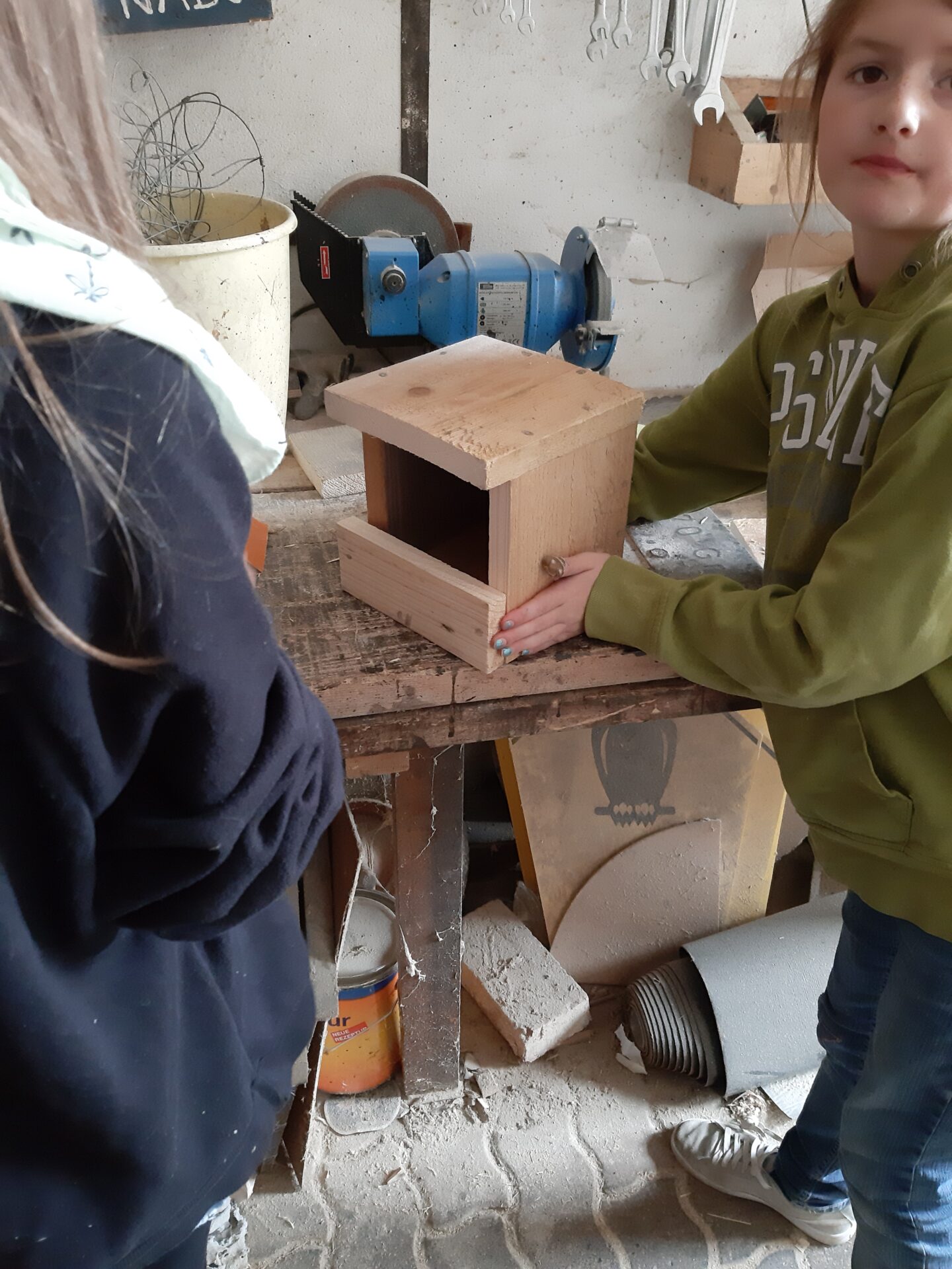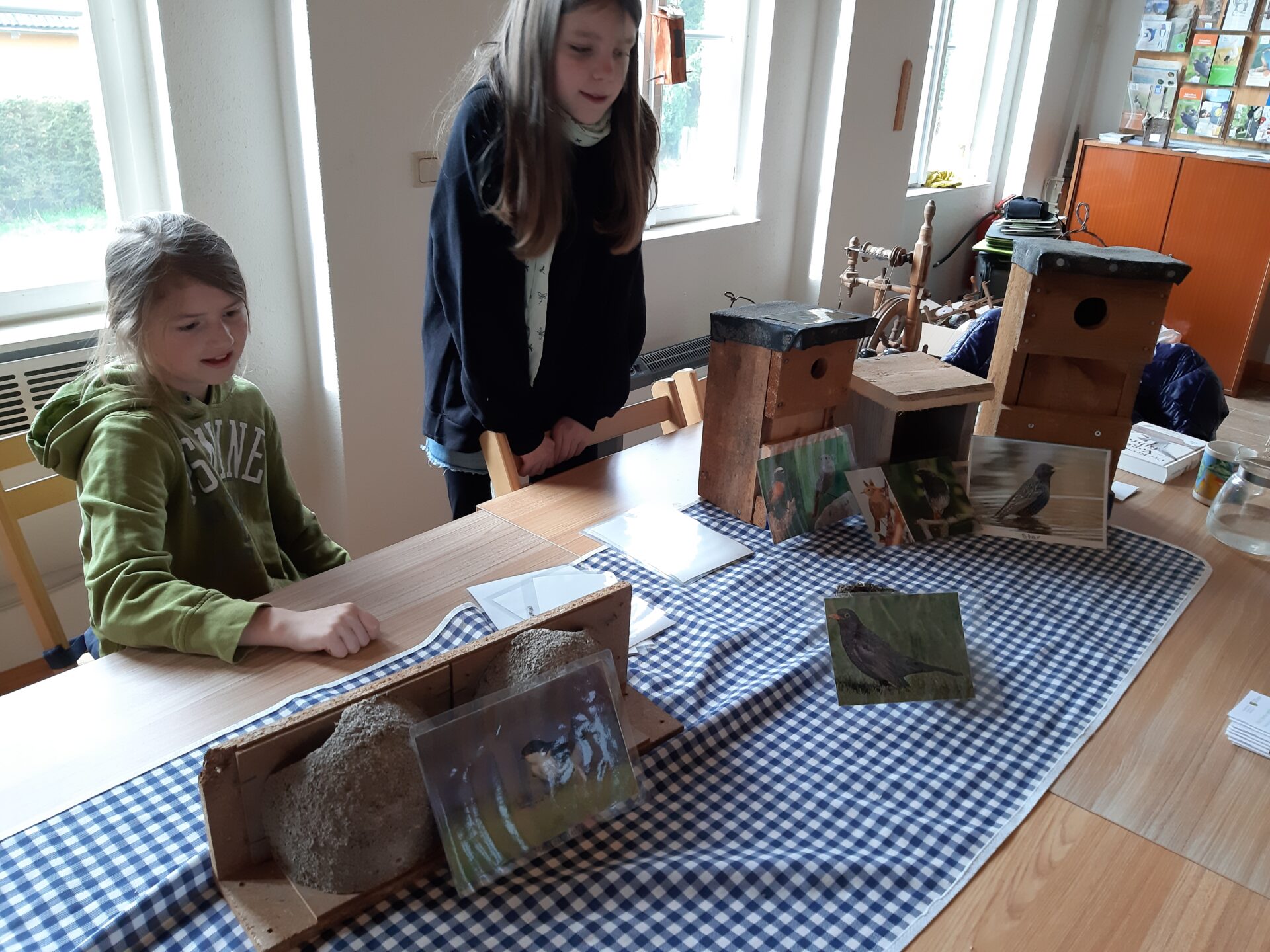 Bei einem Nistkastenrätsel mussten die Molche herausfinden welche Nisthilfe für welchen Vogel bestimmt ist. Nach einem selbstgekochten Mittagessen werkelten die Molche in der Werkstatt der Naturschutzstation und bauten Halbhöhlen für den Hausrotschwanz.