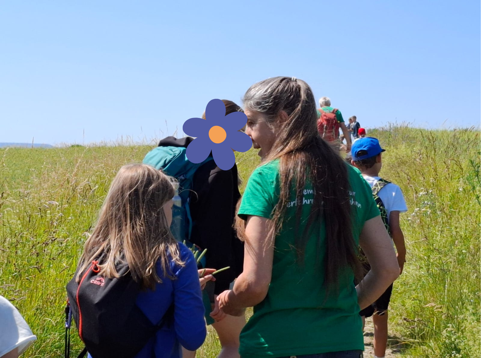 Bereits um 5 Uhr wurde ich von den ersten Kindern geweckt, weil sie meine Hilfe brauchten. Ich war erschöpft, aber irgendwie sehr zufrieden mit der Stimmung. Für die größeren Menschen und mich bereitete ich Kaffee zu und half danach den kleineren Menschen beim Versuch, eine Leiter aus Reepschnüren an einem Baum zu bauen. Gemeinsam erprobten wir den sogenannten Prusikknoten. Nach dem Frühstück packten sich alle Kinder die Brotdose, und zu dritt zogen wir mit 15 Kindern los. Frank hatte eine Wanderung geplant, und um 15 Uhr sollten wir wieder zurück sein.