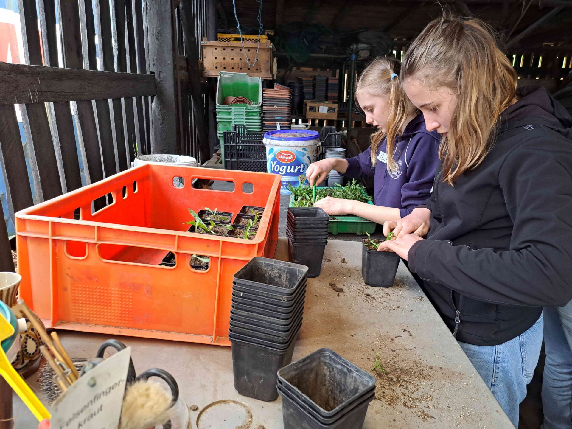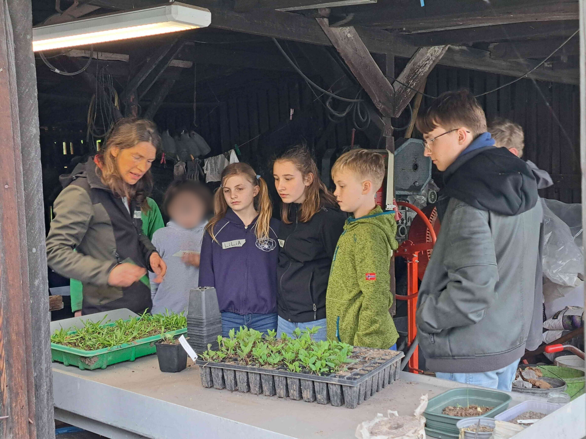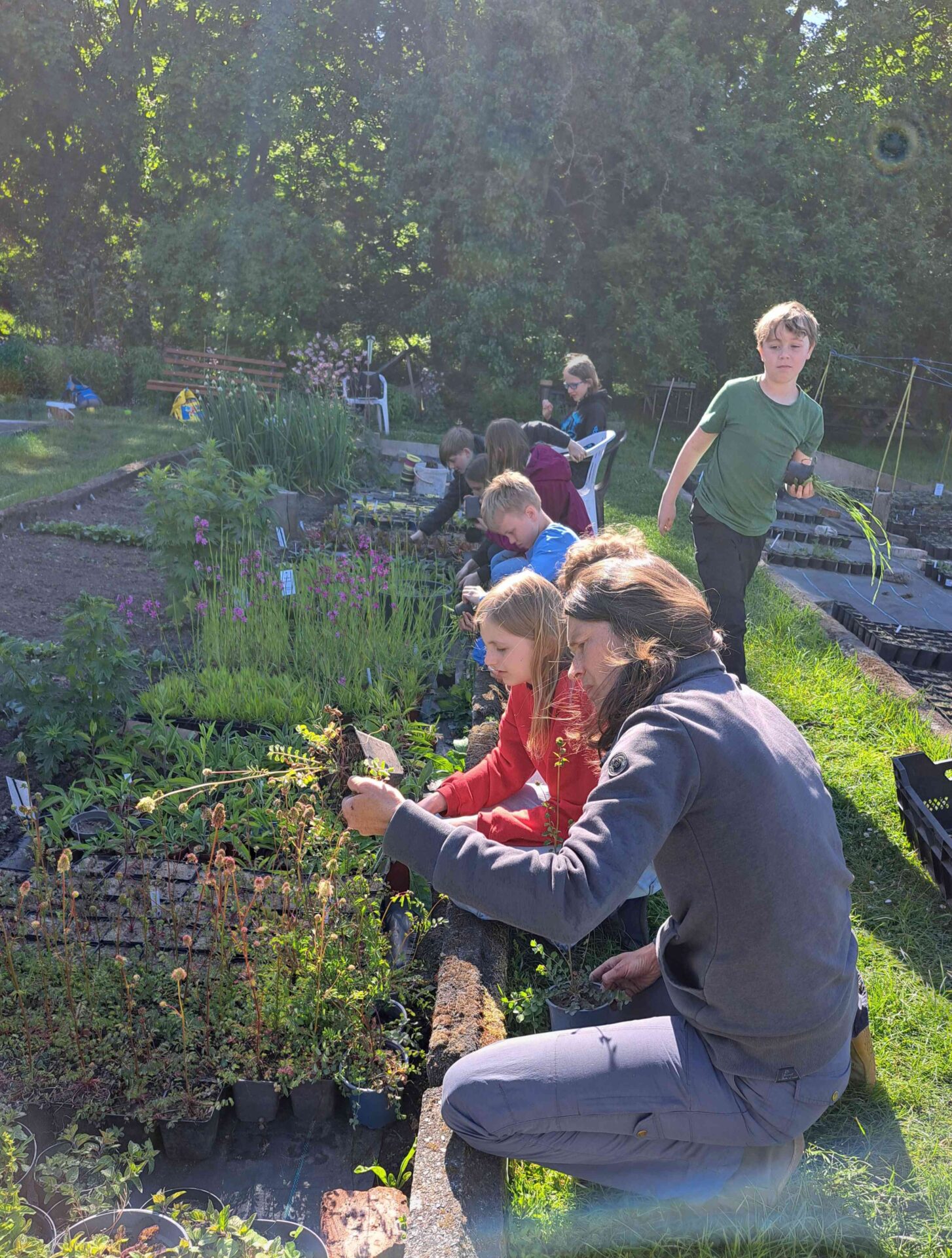 Beim sogenannten Pikieren, also dem vorsichtigen Vereinzeln junger Pflänzchen, sorgten sie dafür, dass jede Pflanze genug Platz zum Wachsen bekommt. Im Mai stand Topfpflege auf dem Programm: Mit viel Geduld und Fingerspitzengefühl drehten die JuNas zahlreiche Pflanzen in ihren Töpfen, damit die Wurzeln nicht einwachsen und die Pflanzen später gut umgesetzt werden können.