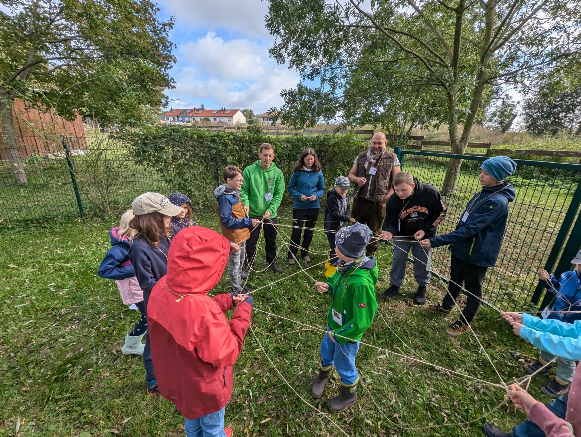 Bei einem Nahrungsnetzspiel, bei dem die Kinder zu verschiedenen Lebewesen eines Gewässers wurden, verknüpften sie sich mithilfe von Schnüren zu einem komplexen Netz. Dies symbolisierte, wie stark alle Teile eines Ökosystems miteinander verbunden sind. Jedes Kind stellte ein Tier, eine Alge oder ein anderes Lebewesen dar, und am Ende wurde deutlich, dass jedes Glied im Netz eine entscheidende Rolle spielt. Wenn eines wegfällt, wird das gesamte Netz instabil – eine wertvolle Lektion über die wechselseitige Abhängigkeit der Natur.