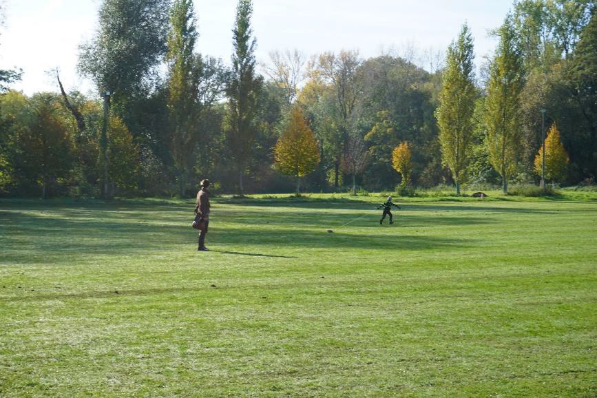 Beutefang einmal anders. Ein JuNa-Kind mit Kaninchenattrappe im Schlepptau. „Mahila“ war an diesem Morgen noch nicht in Jagdstimmung.