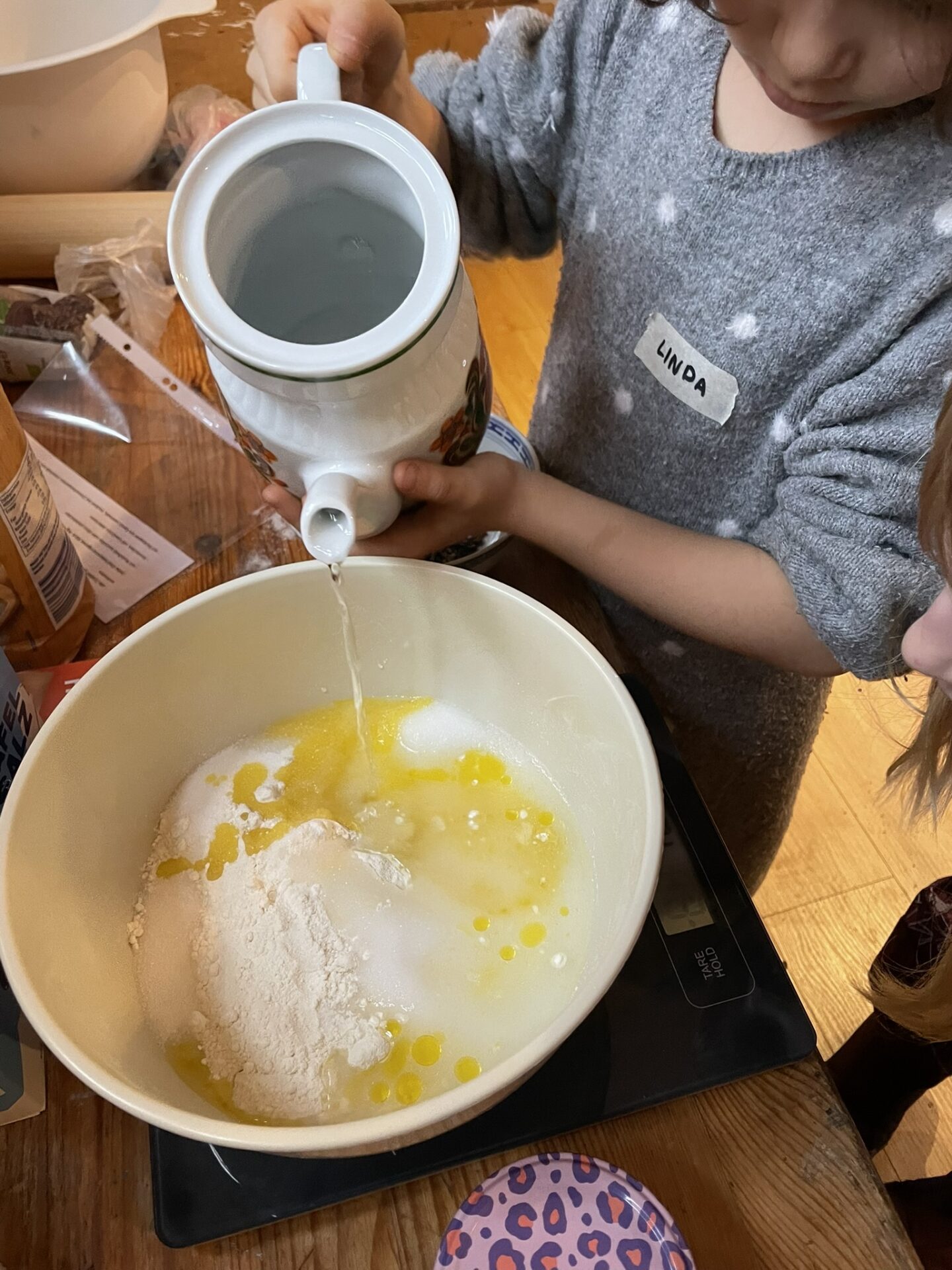 Im Anschluss wurde es still und besinnlich. Bei einer Schokoladenmeditation kamen wir zur Ruhe und entdeckten ein Stück Schokolade einmal ganz neu – mit allen Sinnen. Danach konnten die Kinder aus verschiedenen Naturmaterialien weihnachtliche Girlanden basteln. Zur Mittagszeit kamen alle zusammen und lauschten gemeinsam einem Hörbeitrag über Eichhörnchen, bevor es am Nachmittag kreativ weiterging. Nun waren der Fantasie keine Grenzen gesetzt: Es wurden Wunschschachteln gestaltet, indem kleine Streichholzschachteln dekoriert und mit persönlichen Wünschen versehen wurden. Besonders berührend waren dabei Wünsche für eine schönere Welt, wie zum Beispiel Gesundheit für die eigene Familie oder mehr schöne, grüne Wälder. Außerdem stellten die Kinder Kerzen aus Bienenwachs und Walnussschalen her und formten hübsche Anhänger aus Salzteig. Da die Weihnachtszeit nicht nur für Erwachsene, sondern auch für Kinder manchmal stressig sein kann, stellten wir gemeinsam unsere eigene Anti-Stress-Knete her. Diese wurde individuell eingefärbt und mit angenehmen Düften versehen.
