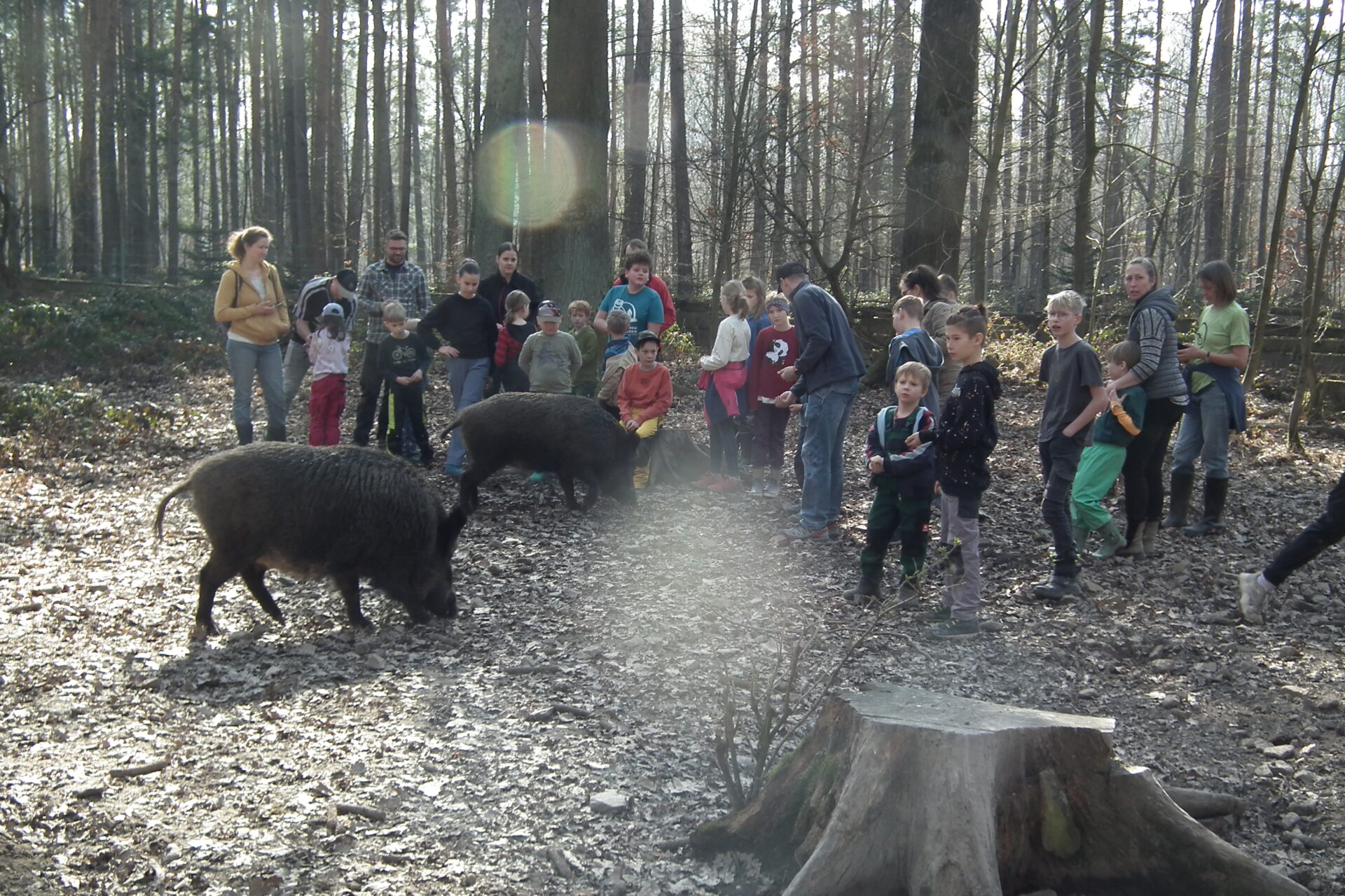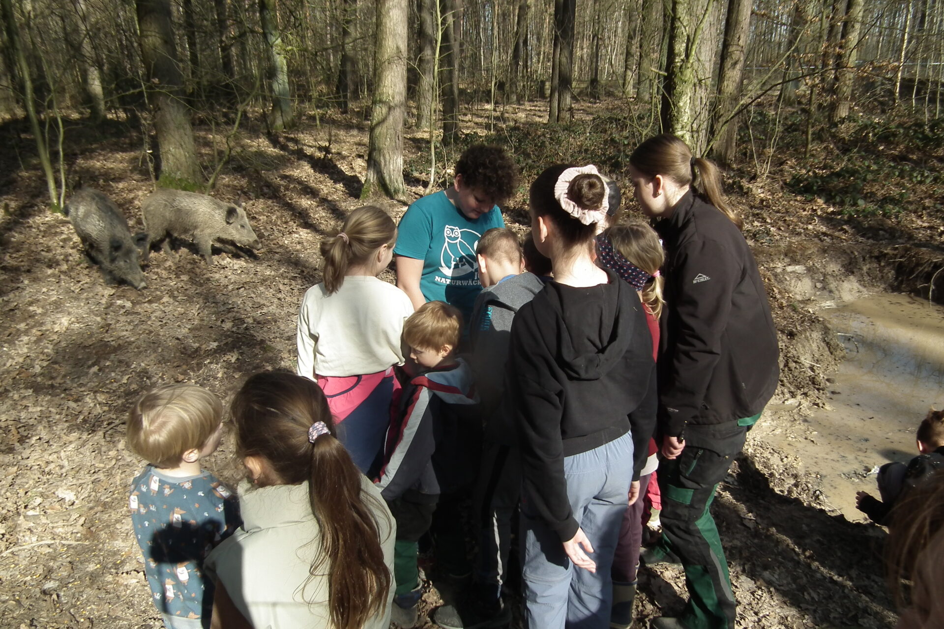 Nach der Pause hatten wir wieder Kraft getankt und schafften es, die 2800 Flatterulmen fertig zu pflanzen.  Die Fläche war voll gepflanzt und es hat uns viel Spaß gemacht. Man ist mächtig stolz, wenn man sieht, dass die Pflanzen in der Erde sind. Gemeinsam mit dem Förster machten wir uns auf „Wanderschaft“. Es ging zum Schwarzwildgatter und wir konnten die Wildschweine füttern. Beim gemeinsamen Abschlussgrillen holten wir uns noch eine Stärkung, bevor wir uns auf den Rückweg machten. Auf alle Fälle werden wir unseren Wald beim Wachsen zusehen. Vielen Dank an alle die diese Aktion möglich gemacht und unterstützt haben. Danke an den Staatsbetrieb Sachsenforst und wir freuen uns schon auf unsere nächste gemeinsame Pflanzaktion.
