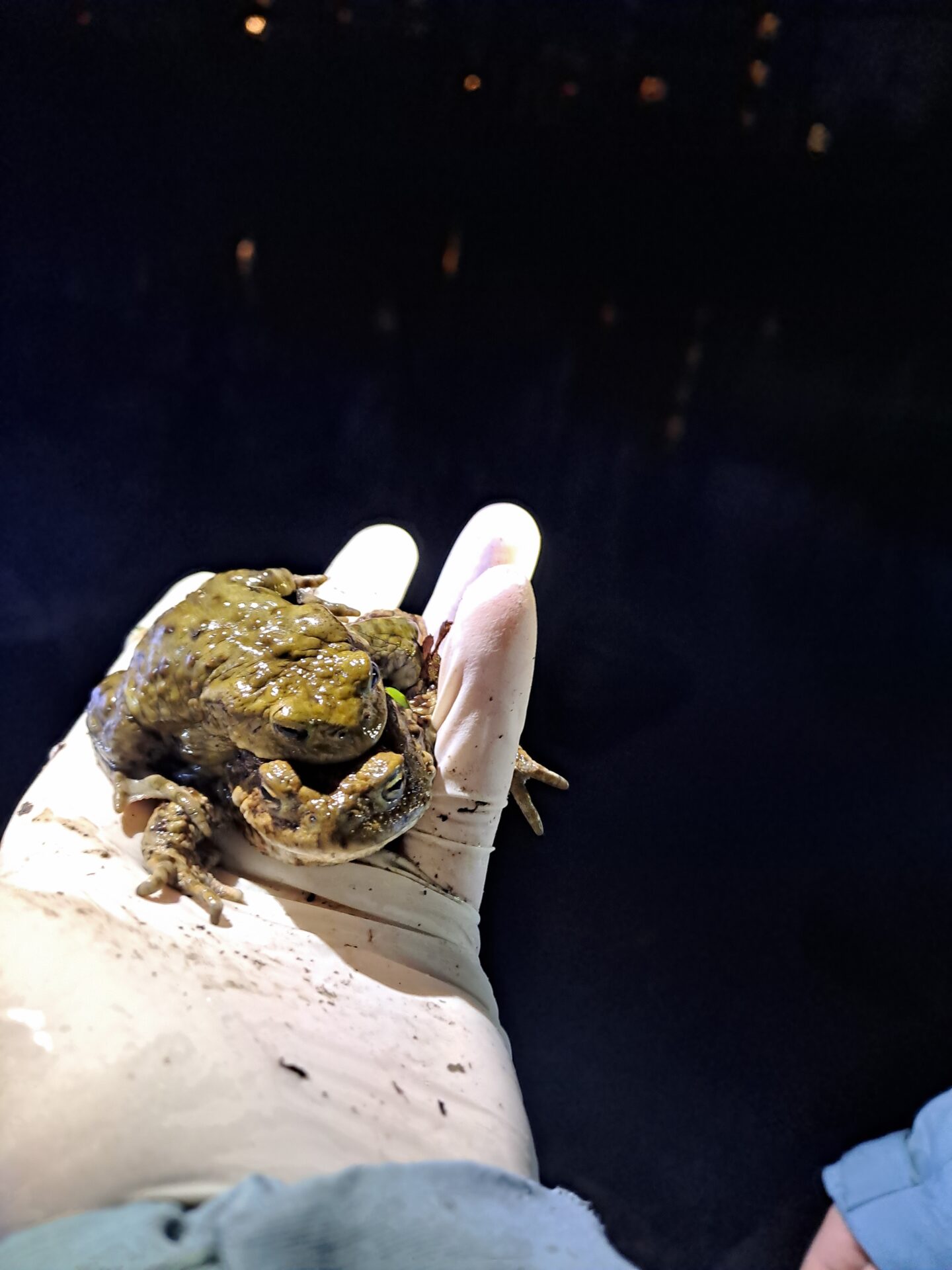 Die Kröten haben es nämlich gar nicht so leicht: Auf ihrem Weg zu ihrem Laichgewässer müssen sie stark befahrene Fahrradwege überqueren. Damit sie sicher ankommen, wollten wir sie dabei unterstützen. Leider war das Wetter nicht ideal (dachten wir zuerst). Damit Kröten aus ihrer Winterstarre aufwachen, brauchen sie mehrere Nächte mit mindestens 5 Grad. Doch es war noch ziemlich kalt – nachts sogar bis zu -1 Grad!