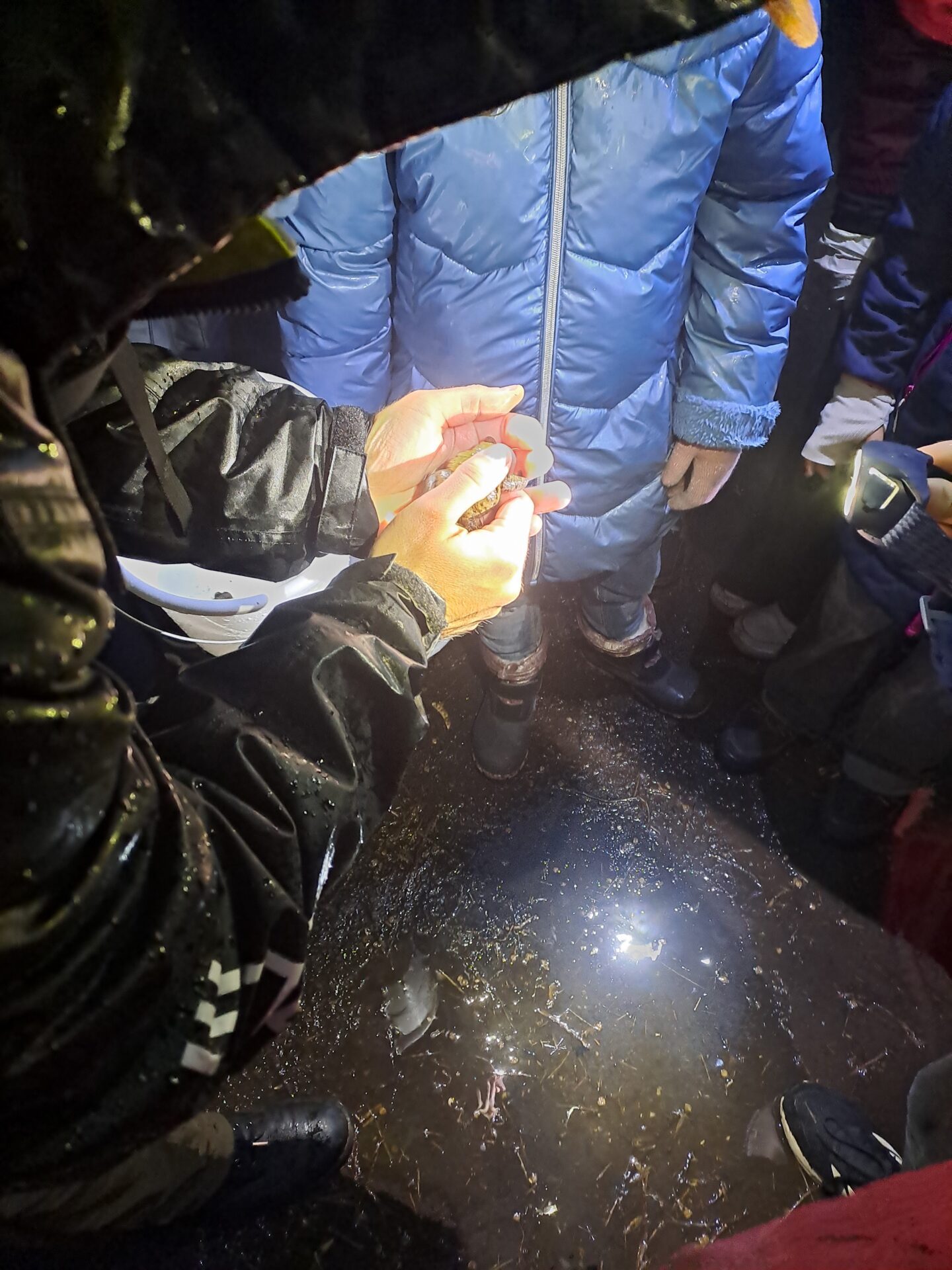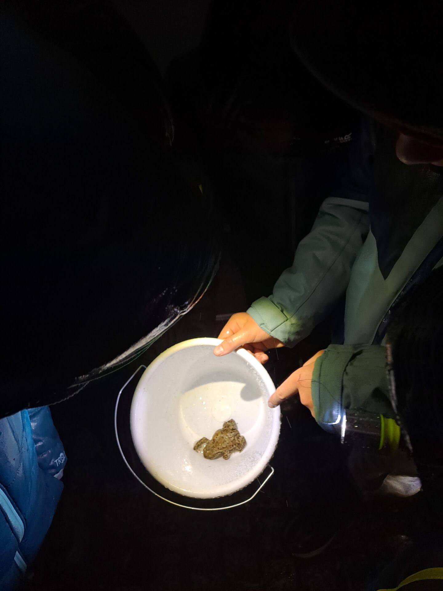 Dann ging es endlich los zum Stötteritzer Wäldchen – im strömenden Regen! Erst dachten wir: „Oh nein!“ Aber dann merkten wir: Genau dieses Wetter lieben die Kröten.