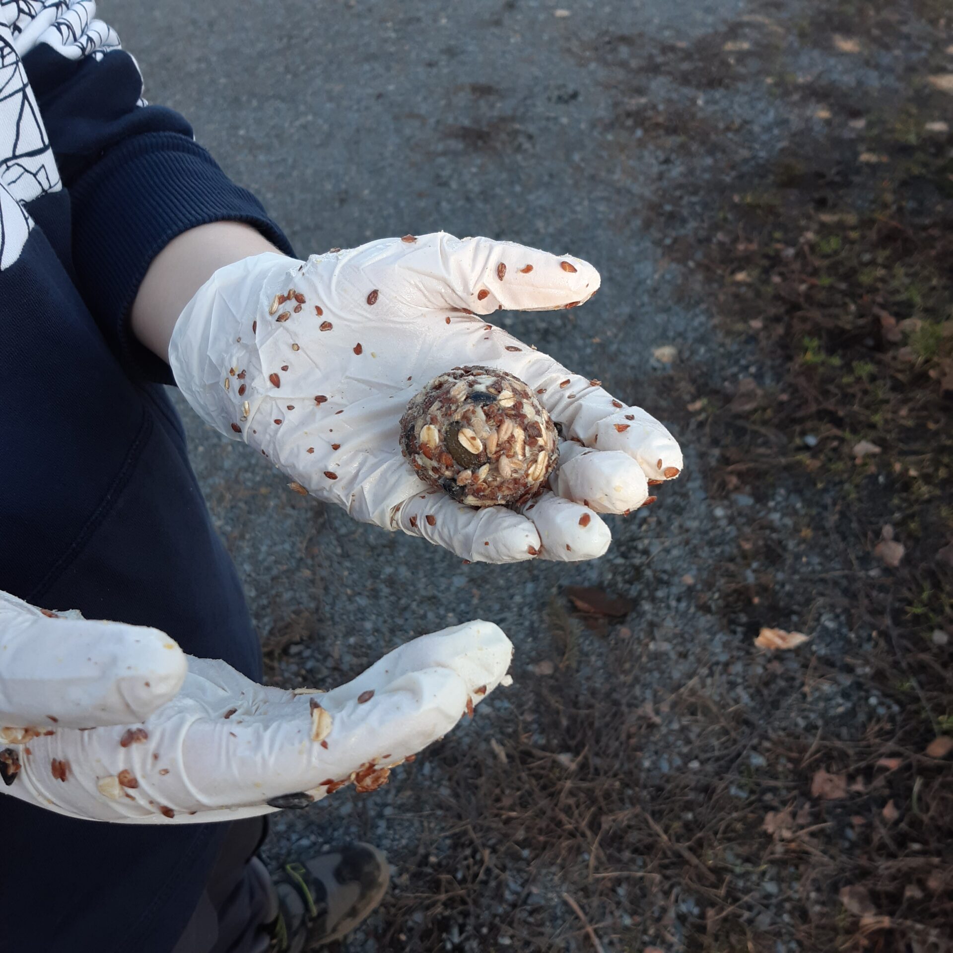 Anschließend stellten wir aus Talg und verschiedenen Körnern eigenes Vogelfutter her. Dabei lernten wir, dass unterschiedliche Vogelarten aufgrund ihrer Schnabelform nicht jedes Futter fressen können.