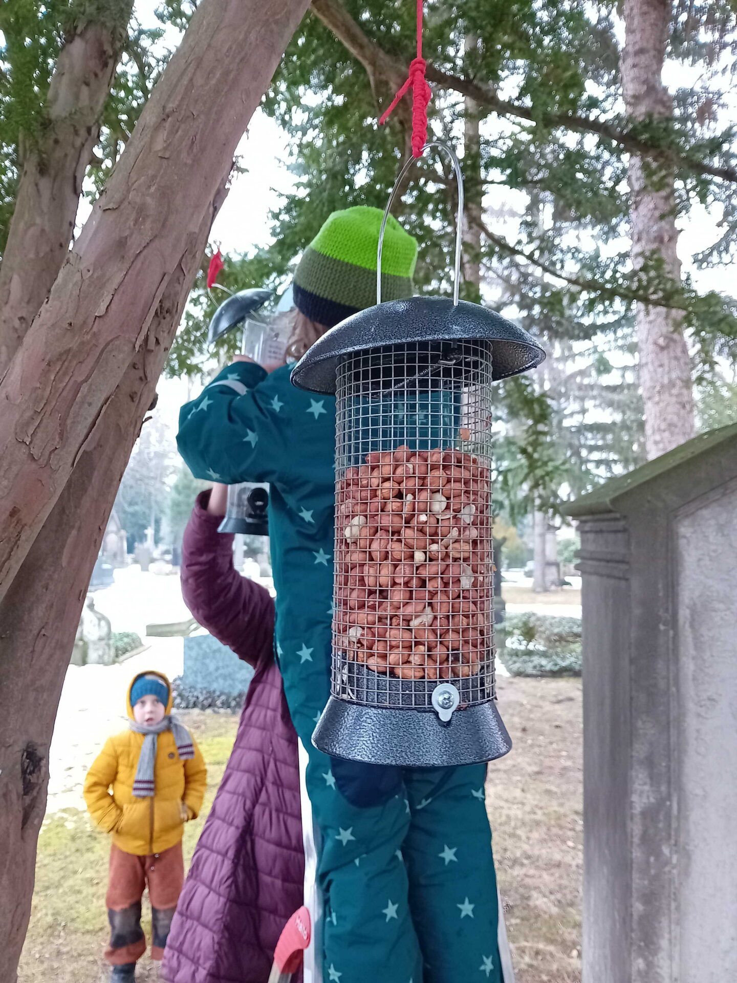 - Prall gefüllte Futtersäulen: Alle Stationen auf dem Friedhofsgelände sind nun wieder bestens bestückt