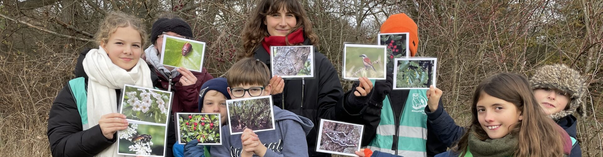 Diesmal trafen sich die JuNas der Praxisgruppe von der Auwaldstation Leipzig an einem sonnigen Samstag, um gemeinsam den Lebensraum Baum an Beispielen näher kennenzulernen. Dabei gingen wir einen langen Weg durch den Schlosspark bis ans Ende und weiter durch den Polenz, ein Revier nahe der geschützten Wiese des Wiesenknopf-Ameisenbläulings. Unterwegs sprachen wir an verschiedenen passenden Stellen über den Lebensraum Baum an Beispielen wie Hainbuche, Linde, Esche und Eiche. Die JuNas lernten außerdem den Weißdorn kennen, der ein Strauch (Hecke) und ein Baum sein kann. Auf dem Weg schauten wir an allen Stellen nach Vögeln und hielten dabei Ausschau mit den Ferngläsern. Dabei entdeckten wir einen Mäusebussard, einen Turmfalken, viele kleine Meisen und Spatzen und auch eine Taube hoch oben im Geäst. Insgesamt gab es mehr Vögel zu sehen als zur belaubten Zeit im Wald. Die JuNas erfuhren auch einiges über den Lebensraum von Eulen und ihrem saisonalen Verhalten während der Dämmerungszeit.
