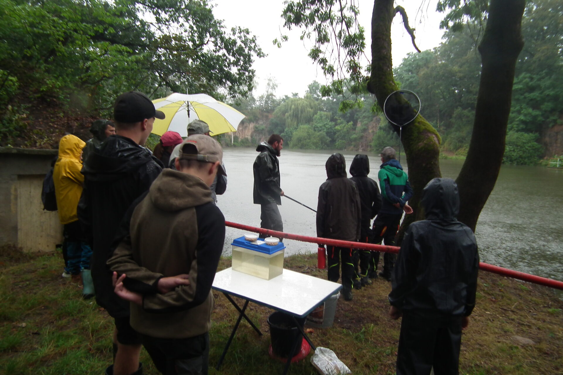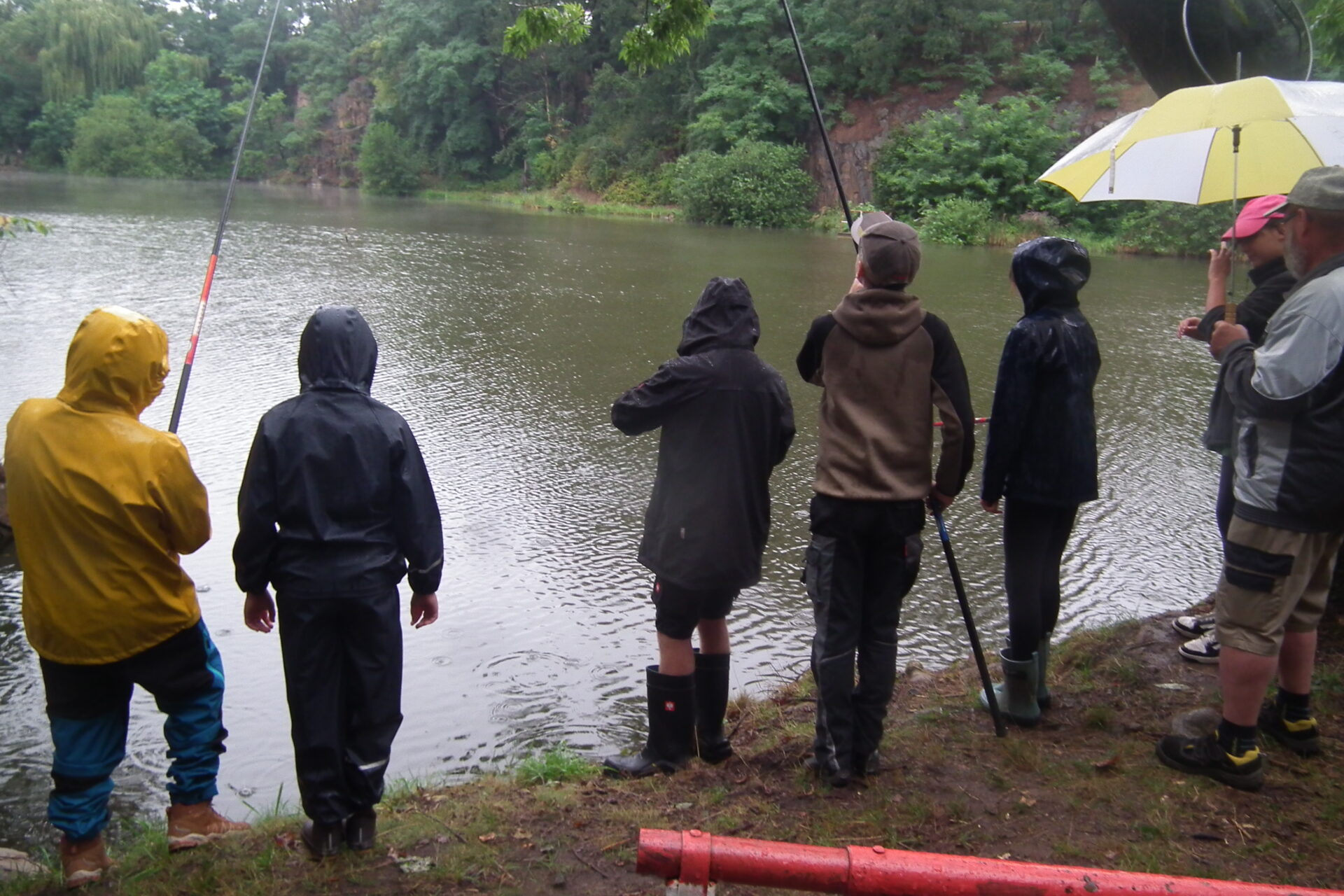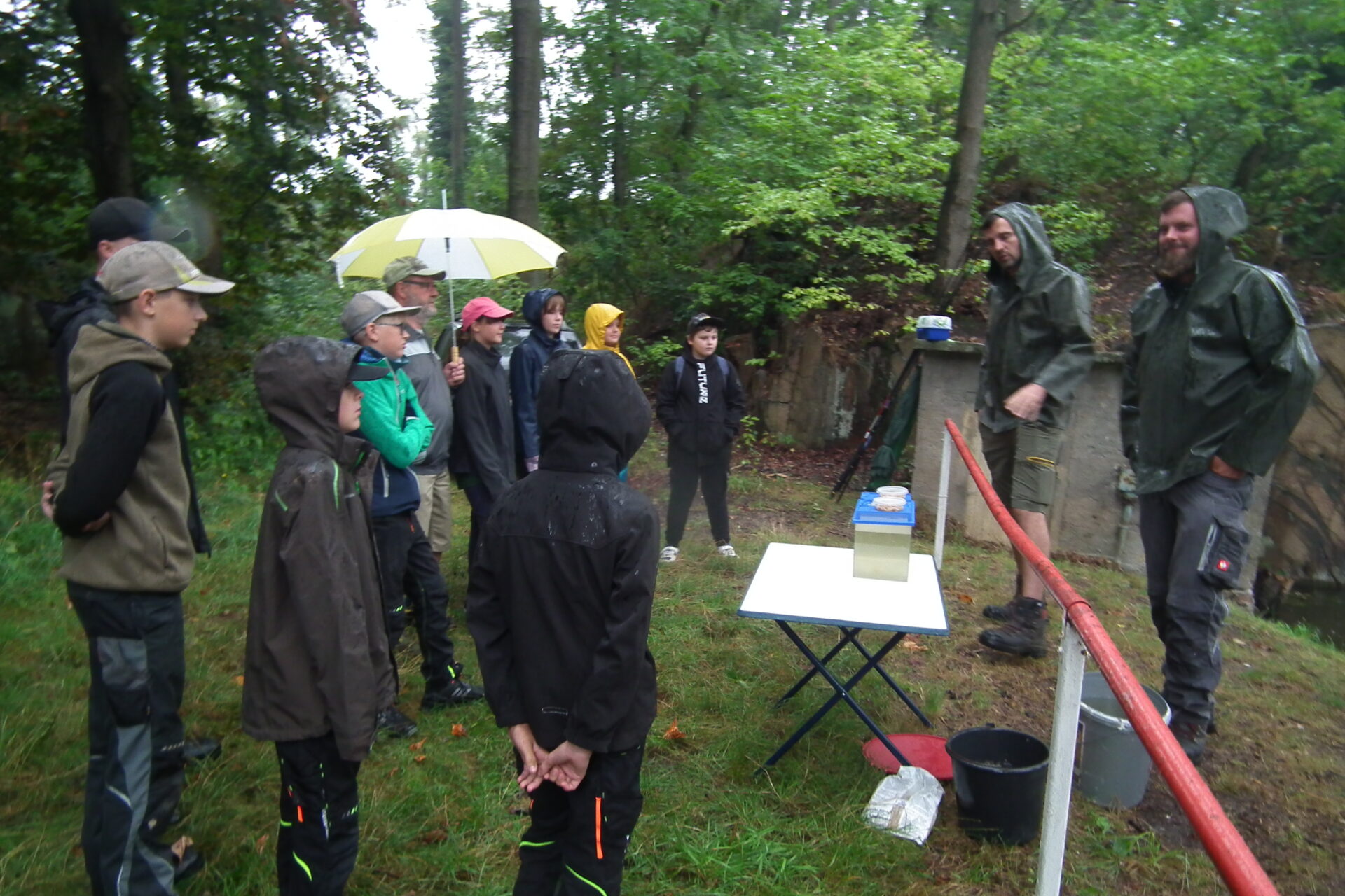 Am letzten Ferientag trafen sich die JuNas der Kinderumweltgruppe Naundorf mit dem Anglerverband Leipzig. Nach vielen trockenen Tagen war es an diesem Freitag soweit, der von vielen langersehnte Regen kam. So verbrachten wir unser Projekt mit Wasser von allen Seiten.