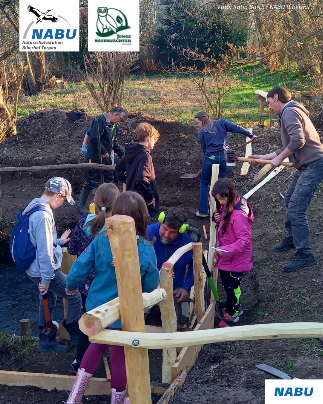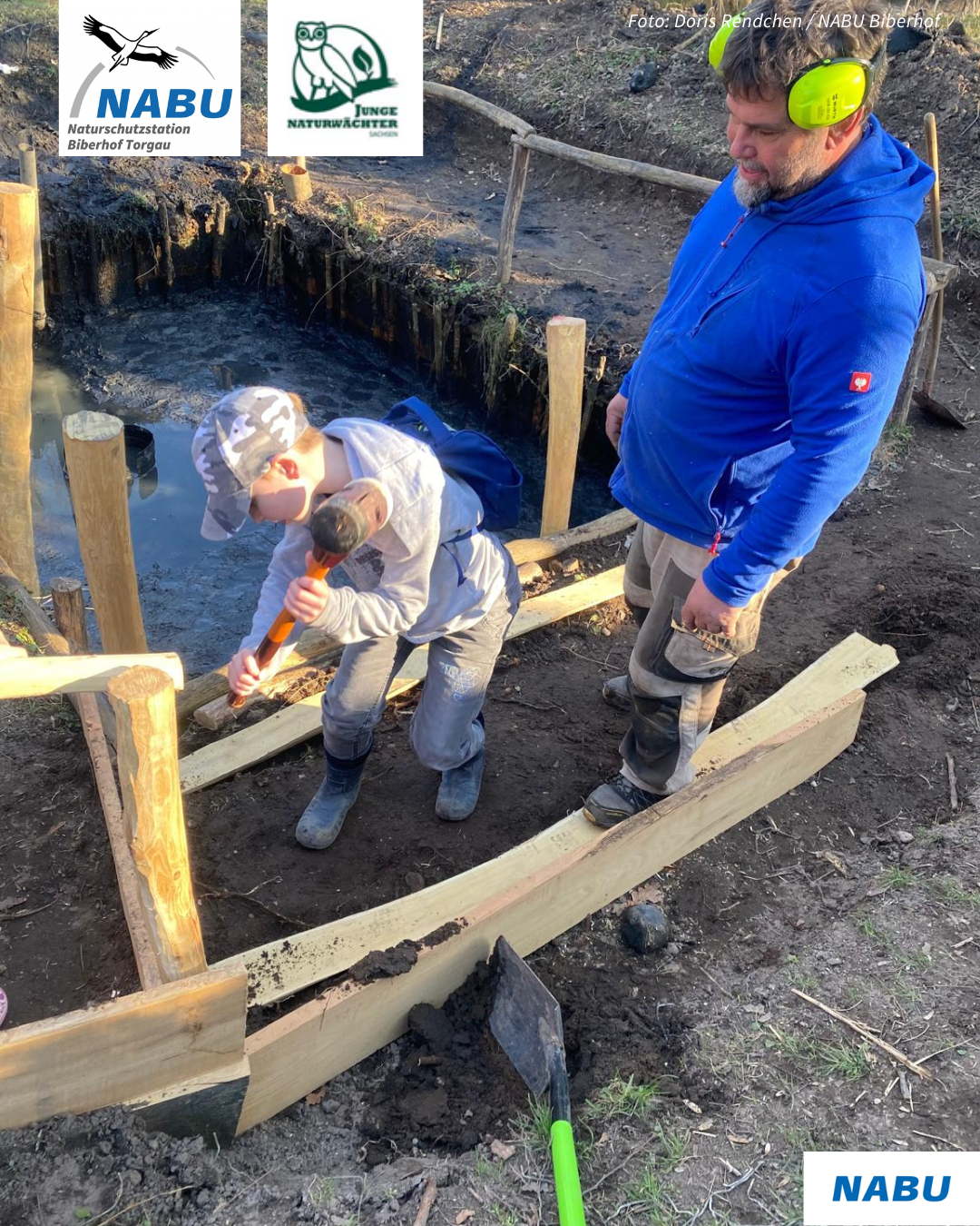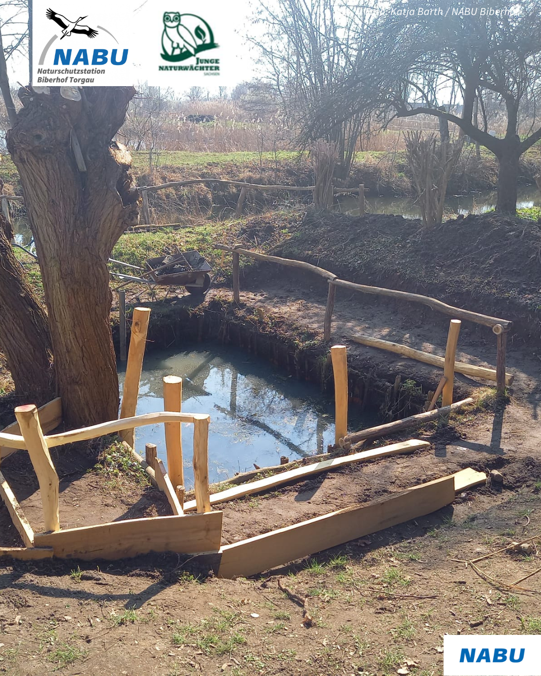 Die zweite Etappe unseres Teichprojekts ist erfolgreich abgeschlossen! Gemeinsam mit den engagierten NABU Biberhof biBBerkids, gefördert durch das JuNa-Programm, konnten wir einen weiteren wichtigen Schritt umsetzen. Beim biBBerkids-Treffen am 18. März wurde unter der fachkundigen Anleitung von Michael Lahn vom MeinKreativhof fleißig gearbeitet: Es wurde gehämmert, gesägt und geschraubt, sodass unser Projekt sichtbar weitergewachsen ist.