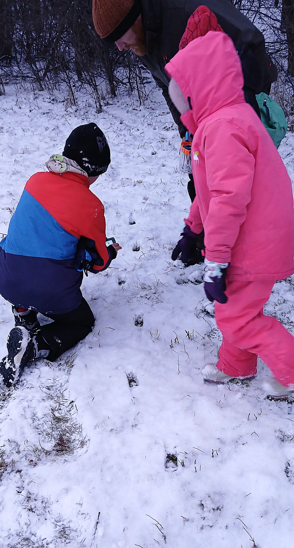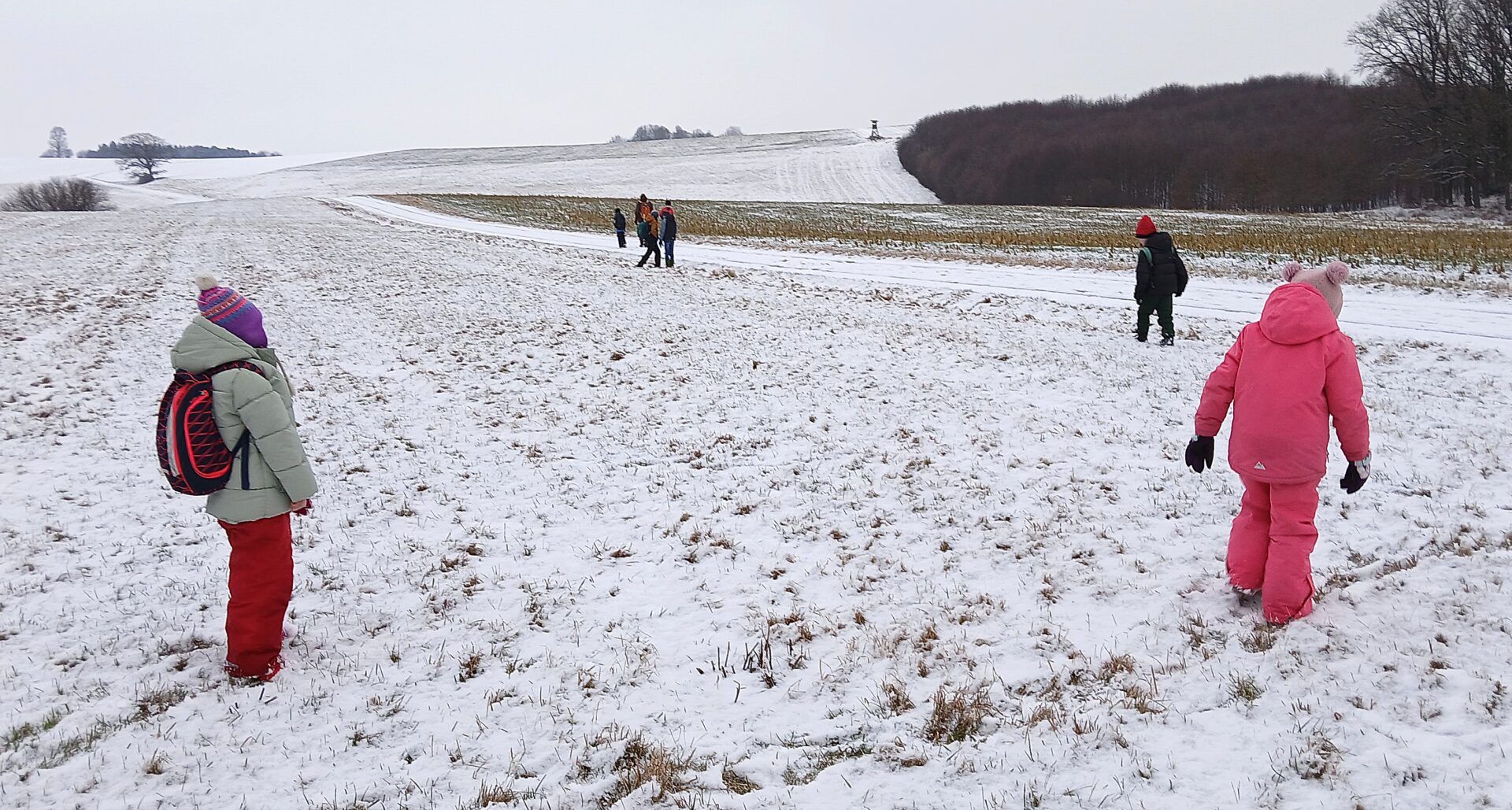 Voller Spannung starteten die Jungen Naturwächter Zittauer Gebirge in ihr Treffen am 27.01.2026. Denn zunächst mussten die Kinder das Thema, um das es dieses Mal gehen sollte, erraten. Mit geschickt gestellten „Wer bin ich?“ Fragen, welche nur mit „Ja“ oder „Nein“ beantwortet werden durften, fanden drei Kinder bald heraus, dass sie ein Keiler, eine Bache und ein Frischling, also eine heimische Wildschweinfamilie waren. Nach einem kurzen Wissensinput zum Wildschwein, wurden 2 Rotten, also zwei Gruppen von Wildschweinkindern und -müttern, gebildet, die auf einer Wiese auf Futtersuche gehen sollten. Da die Wiese ziemlich hoch war und etwas Schnee lag, war es gar nicht so einfach, alles Futter zu finden. Die Wildschweine mit ihren superfeinen Spürnasen hätten dabei bessere Karten gehabt. Selbst Kastanien können sie unter der Erde erriechen. Für unsere menschliche Nase undenkbar. Das gefundene Futter wurde dann ausgewertet. Also: was davon fressen Wildschweine und was nicht? Heraus kam: fast alles. Baumfrüchte, Beeren, Wurzeln, Pilze, Mäuse, Amphibien, Insekten, Würmer und Co.