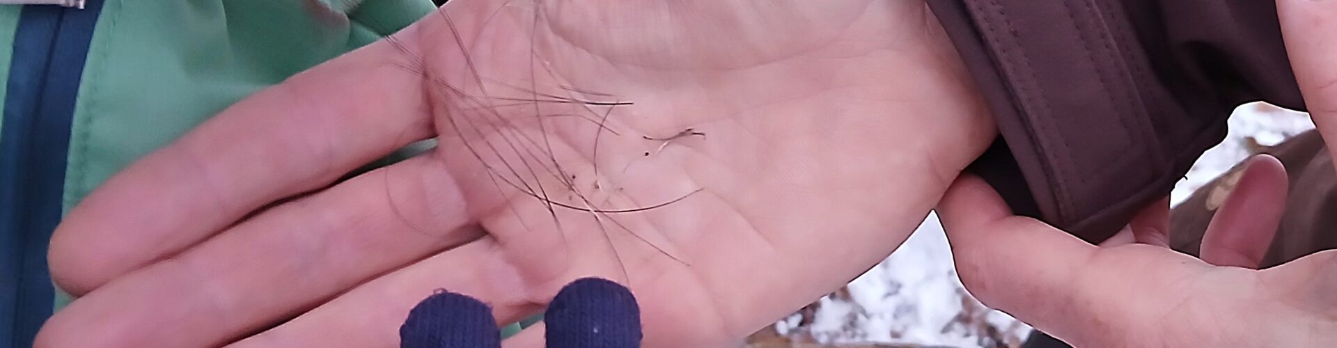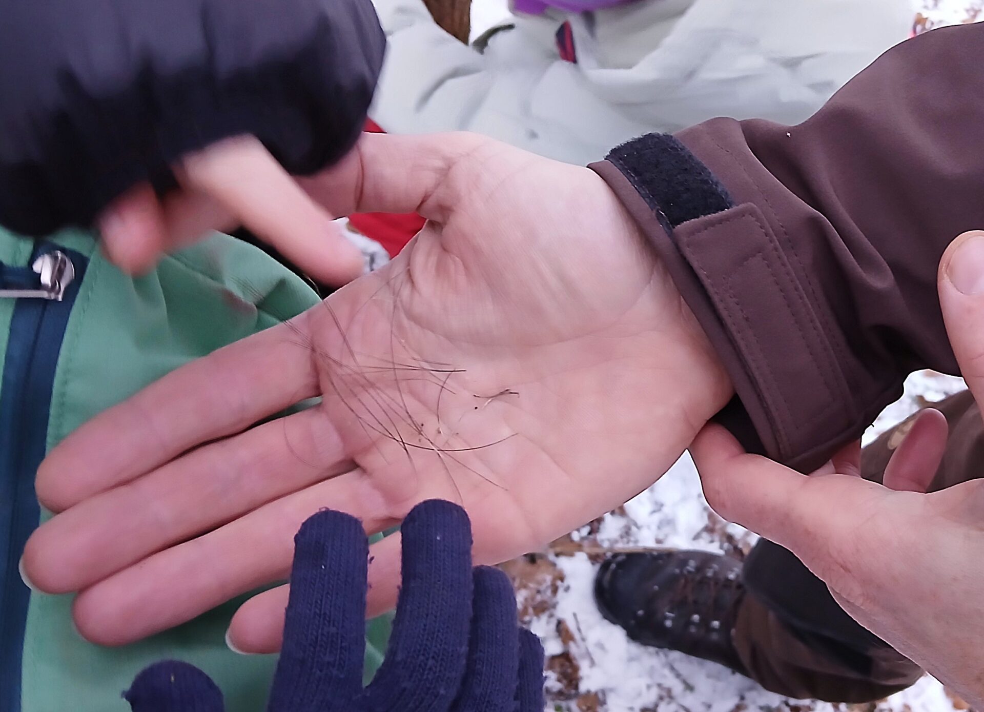 Dann ging es auf Spurensuche. Wo sind Wildschweine unseren Weg gekreuzt? Wo haben sie nach Nahrung gesucht? Wo geschlafen? Und wo haben sie sich an Bäumen, sogenannten Malbäumen, geschuppert? Nach und nach entdeckten wir eine Spur nach der anderen. Das Highlight war die Tagesaufgabe. Jedes Kind sollte den Gruppenleitern eine Wildschweinborste bringen. Binnen kurzer Zeit später wuchs die Sammlung auf zwei Dutzend Borsten. Die kleinen Detektive untersuchten jeden Malbaum genau und wurden immer wieder fündig, so dass jeder ein paar Borsten mit nach Hause nehmen konnte. Im abschließenden Quiz wurden alle Fragen richtig beantwortet. Darunter auch die Frage: „Wer fördert durch sein Wühlen das Keimen von Baumsamen und hilft so dem Wald, sich selbst zu erneuern?“ Wisst ihr es auch??