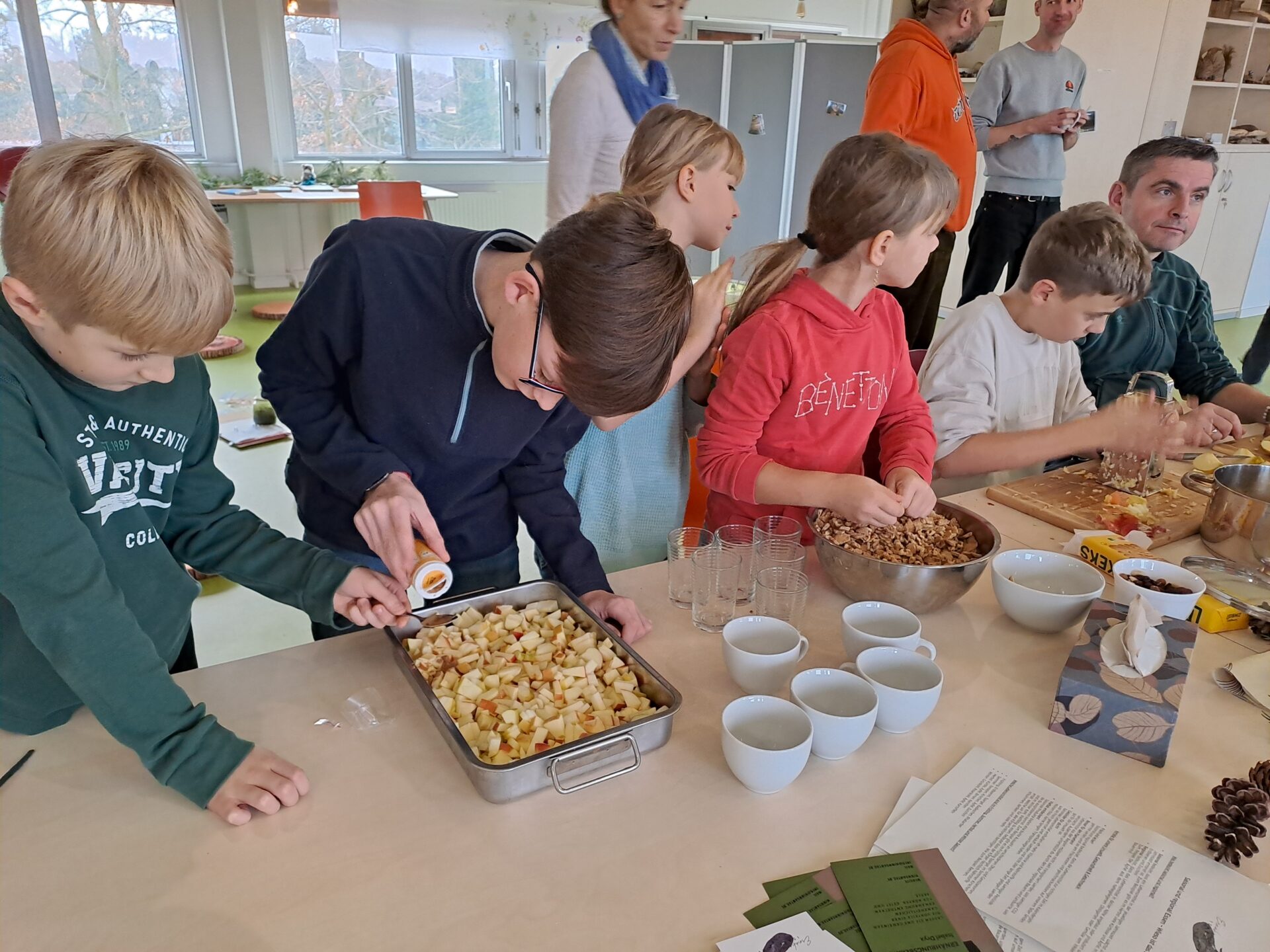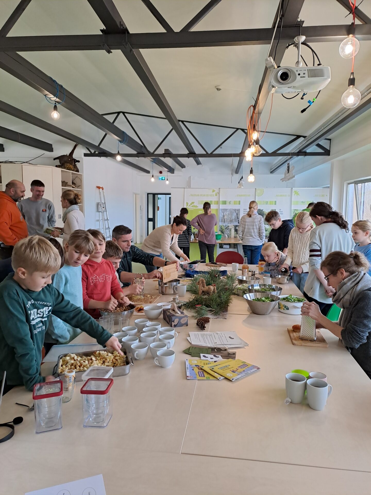 Im Dezember wurde es bei uns nochmal richtig gemütlich – und richtig lecker! Zum Jahresabschluss trafen wir uns mit der ganzen JuNa-Gruppe und Ihren Eltern, um gemeinsam etwas ganz Besonderes zu erleben: nachhaltiges Kochen. Besuch bekamen wir vom Ernährungsrat Leipzig – und der kam nicht mit leeren Händen! In seiner mobilen Küche hatte er alles dabei: Herdplatten, Schüsseln, Teller … und natürlich köstliche Rezepte 😋 Unter dem Motto „Gutes Essen für alle“ erklärten uns Isabel und Toni, warum es so wichtig ist, regional und saisonal zu essen.
