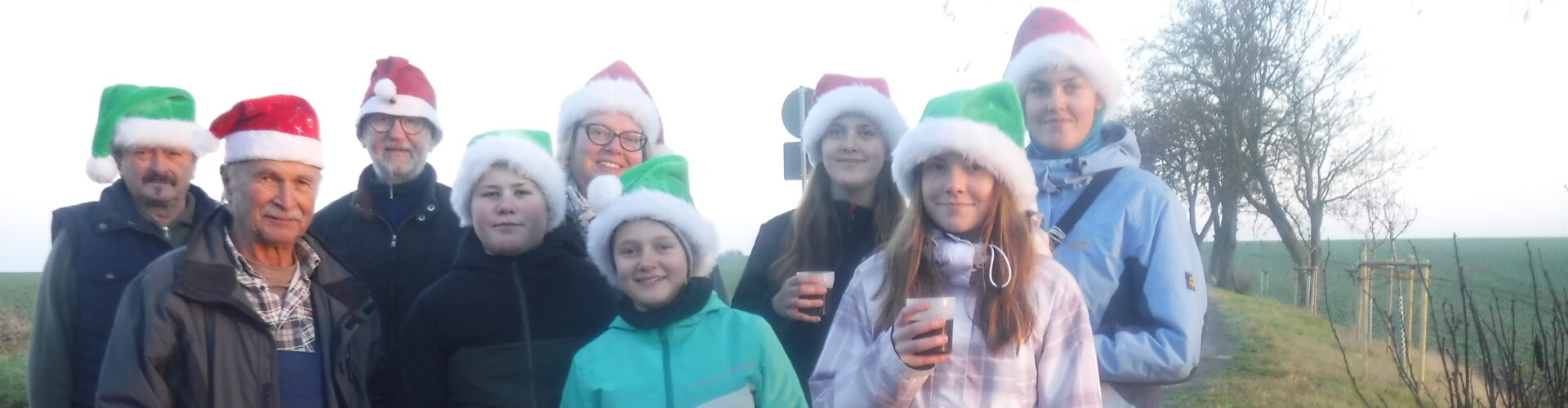 Gegen 14 Uhr starteten wir in der Nähe von Lüttnitz. Weihnachtsmützen auf, Spaten, Säge, Ramme oder Strick in die Hand und los ging es.