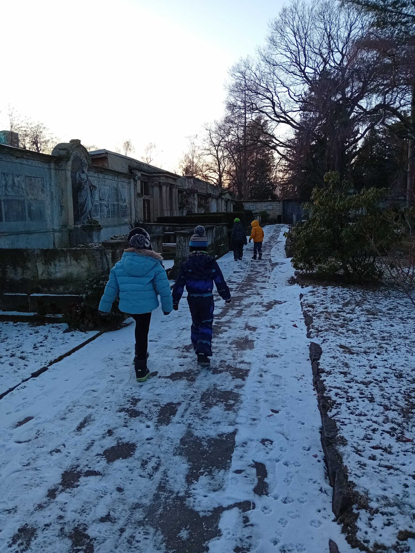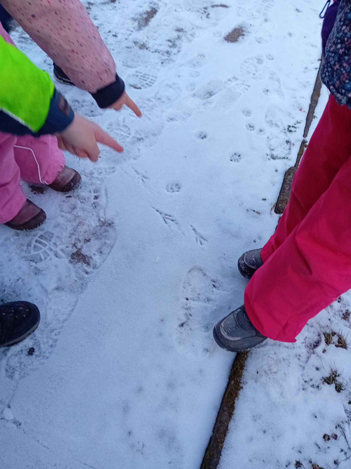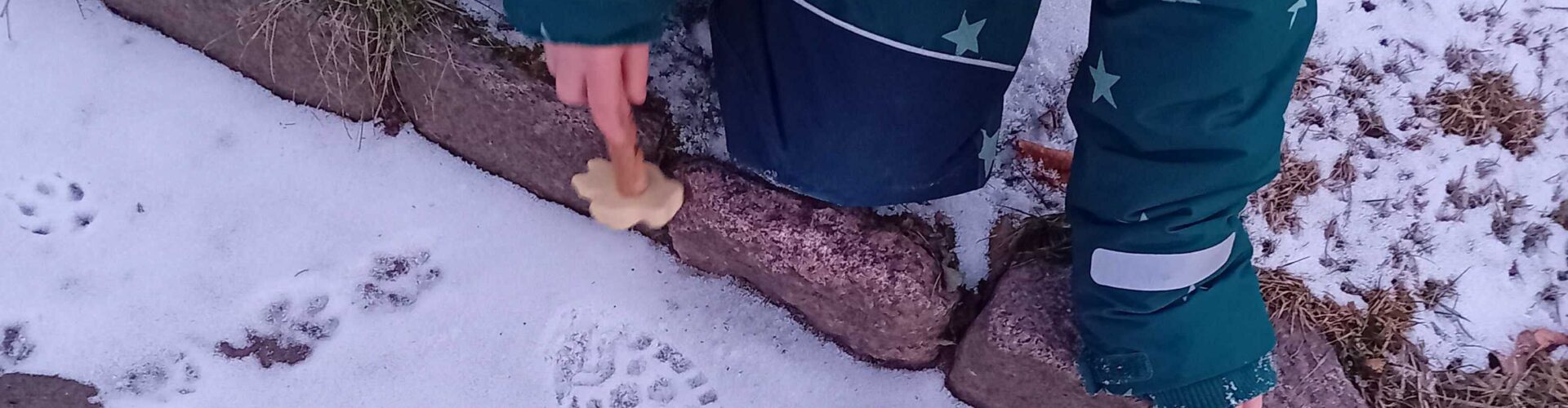 Am 07.01.2026 trafen sich die Grashüpfer vom Haus der Natur Dresden zu ihrem ersten JuNa-Treff in diesem Jahr. Da noch eine leichte Schicht aus Schnee lag, haben sie sich gleich auf die Suche nach Tierspuren im Schnee gemacht. Und siehe da – allerhand Tierfährten zeichneten sich wunderschön im glitzernden Schnee ab. Nach kurzem Überlegen wurden Vermutungen geäußert, welches Tier die Spuren hinterlassen hat. Um dann ganz sicher zu sein, nutzten wir Fährtenstempel, um die Spuren zu vergleichen. Gefunden haben wir: Vogel-, Dachs-, Fuchs-, Eichhörnchen-, Hasenfährten. Neben den Fuchsfährten waren auch einige Hunde- und Katzenfährten zu sehen. Dabei fiel den Kindern auf, dass es gar nicht so leicht ist, die Fährten von Füchsen, Hunden, Wölfen und Katzen auf den ersten Blick auseinander zu halten. Bei den Spuren von Fuchs und Hund schauten die Kinder also immer ganz genau hin und verglichen sie mit dem Fährtenbestimmungsbuch. Die Katzenfährte konnte sie nach kurzer Zeit direkt als solche erkennen, und den Wolf schlossen sie bei allen Fährten richtigerweise aus – Oder hat der Friedhof etwa doch einen pelzigen Bewohner mehr?