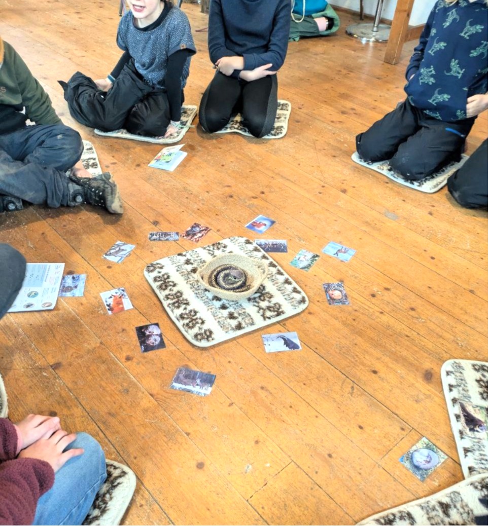 Es war eisig kalt draußen und die „Blindschleichen“ wollten sich beim ersten Treffen im neuen Jahr nicht gleich in die Kälte wagen. Darum haben wir uns zu Beginn im Kaminzimmer der Auwaldstation einige Bilder von Tieren angeschaut, die wir im Auwald finden könnten. Eigentlich wissen alle schon Bescheid, wer Winterschlaf, Winterruhe oder Winterstarre hält, aber doch wollten sich alle nochmal darüber austauschen und ihr Wissen weitergeben. Dabei gab es auch einige spannende Naturerlebnisse von Zuhause oder aus dem Urlaub zu berichten. So konnten die JuNa auch hier noch einiges mehr über die Gruppe der Säugetiere lernen.